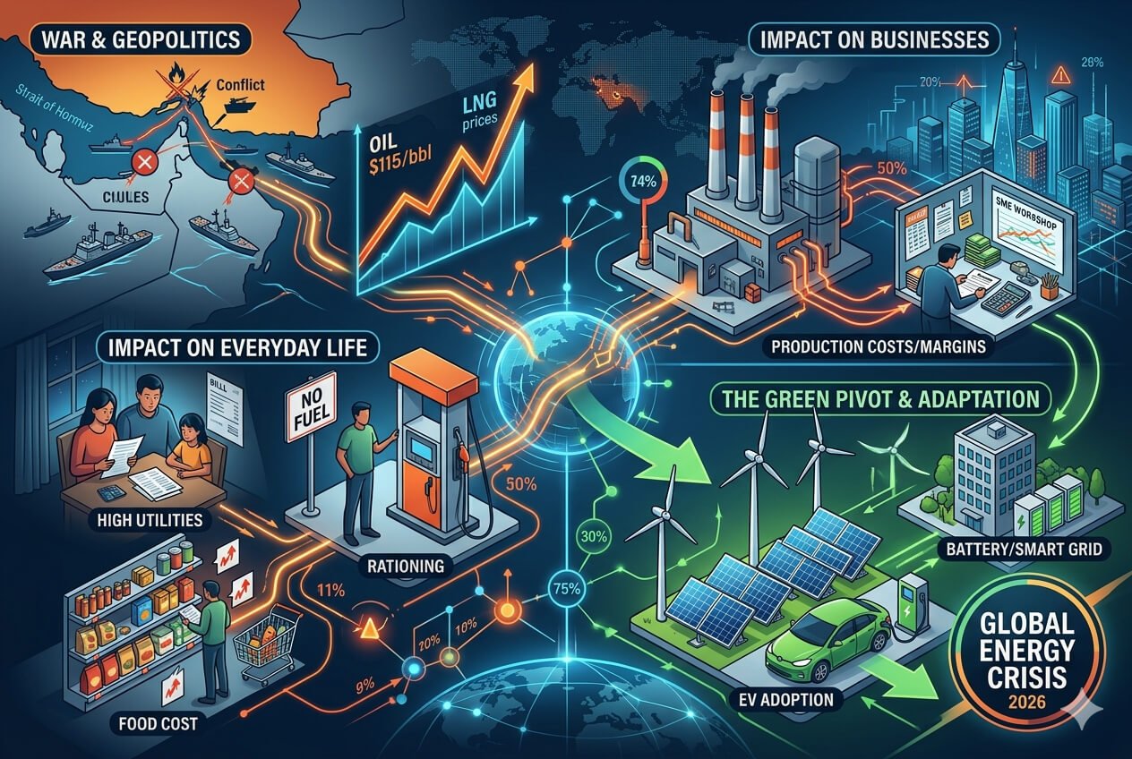 The year 2026 has arrived with a familiar, yet more intense, shadow over the global economy: a full-scale energy crisis. Unlike the localized shocks of previous decades, the current situation is a complex web of geopolitical tension and direct military conflict. From the kitchen table to the corporate boardroom, the surge in fuel and electricity prices is no longer just a headline—it is a daily hurdle.